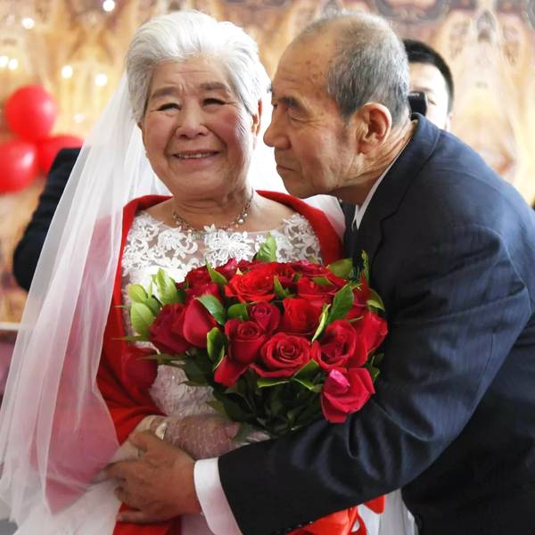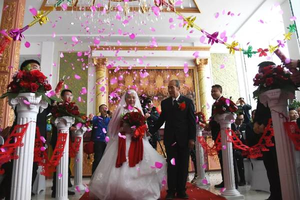 婚禮現場(chǎng),這對一輩子共患難、同甘苦的老夫妻,笑得那樣甜,那樣暖……