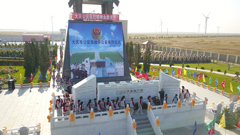 活動(dòng)結束后,大慶讓胡路區讓北學(xué)校百余名身著(zhù)校服的學(xué)生也來(lái)到天堂墓園為大慶公安英烈敬獻鮮花。