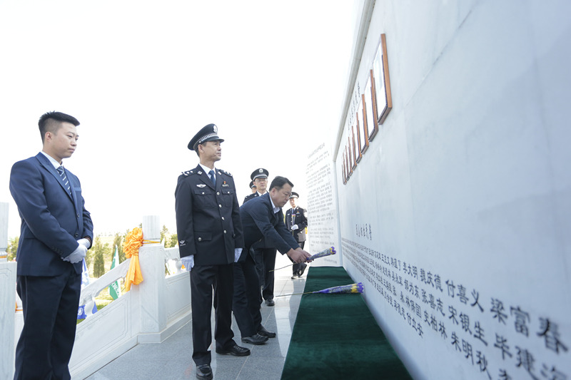 喇嘛甸公安分局在局長(cháng)邵自生,政委鄒玉峰帶領(lǐng)下,全分局民警也為大慶公安英烈鞠躬獻花。