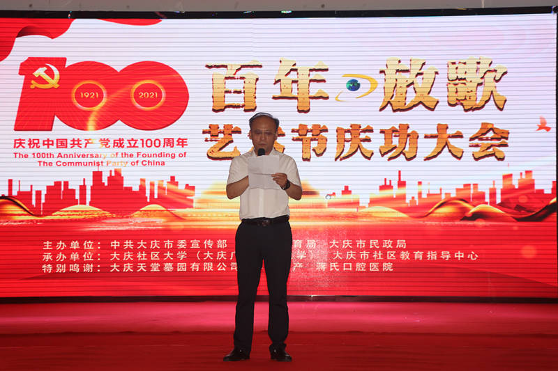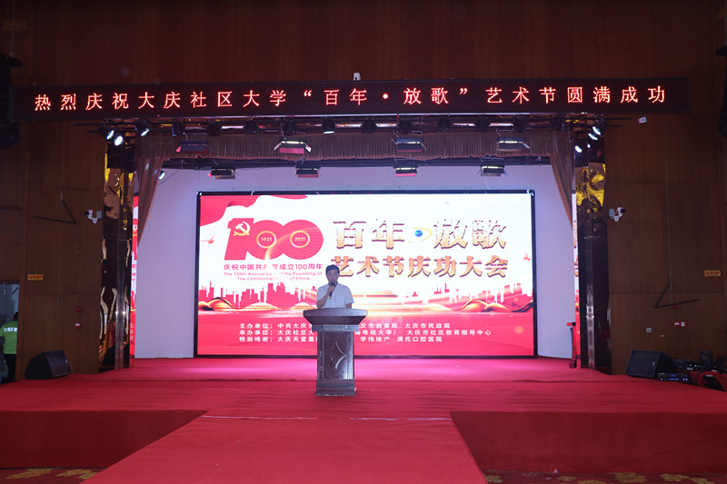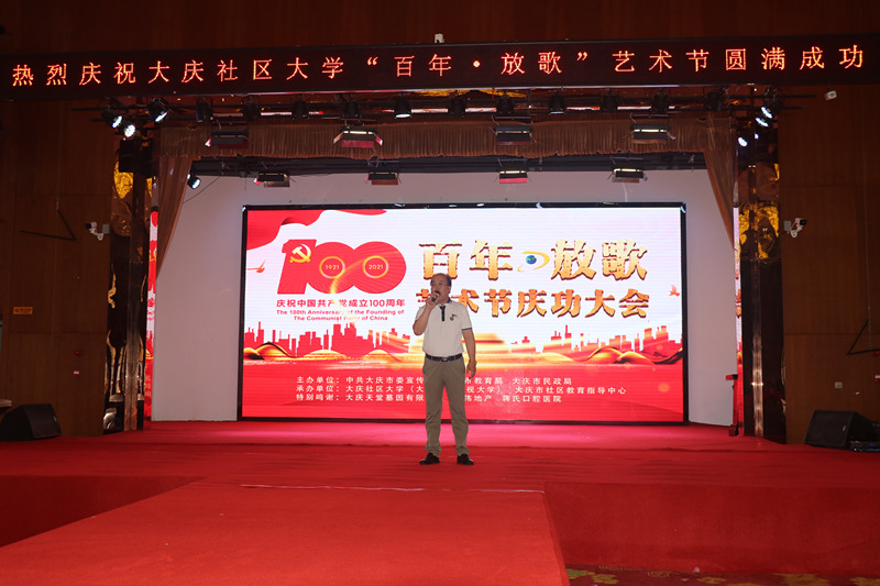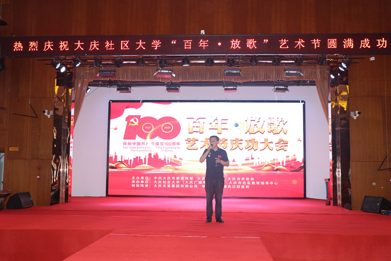 為慶祝建黨100周年,大慶社區大學(xué)舉辦的百年放歌藝術(shù)節活動(dòng),今天上午在大慶黑漁湖藝術(shù)邨落下帷幕。來(lái)自全市各藝術(shù)團長(cháng),演員以及各路群體300余人參加了這次活動(dòng)。演出活動(dòng)前,全體起立,手持國旗,全體參會(huì )人員放聲歌唱《沒(méi)有共產(chǎn)黨就沒(méi)有新中國》。大慶社區大學(xué)校長(cháng)丁文彬,黨委書(shū)記姜樹(shù)林,副校長(cháng)孟偉軍,主任孫銘發(fā)表了熱情洋溢講話(huà),并為今后如何辦一個(gè)高質(zhì)量大慶社區大學(xué),更好地為大慶人民服務(wù),為老年人創(chuàng )造幸福晚年提出了很多很好思路和方向。大會(huì )表?yè)P了總導演錢(qián)峰等人為這場(chǎng)活動(dòng)付出的辛苦。