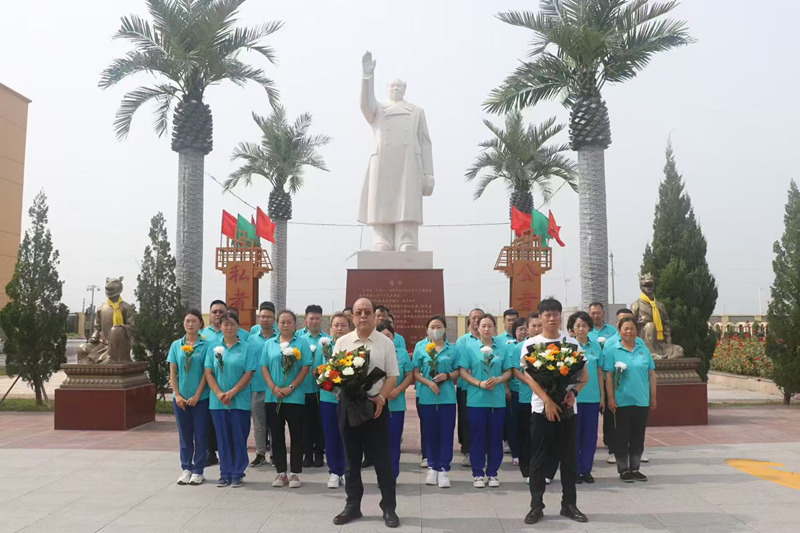 (1)手持鮮花共同拜謁毛主席漢白玉像。