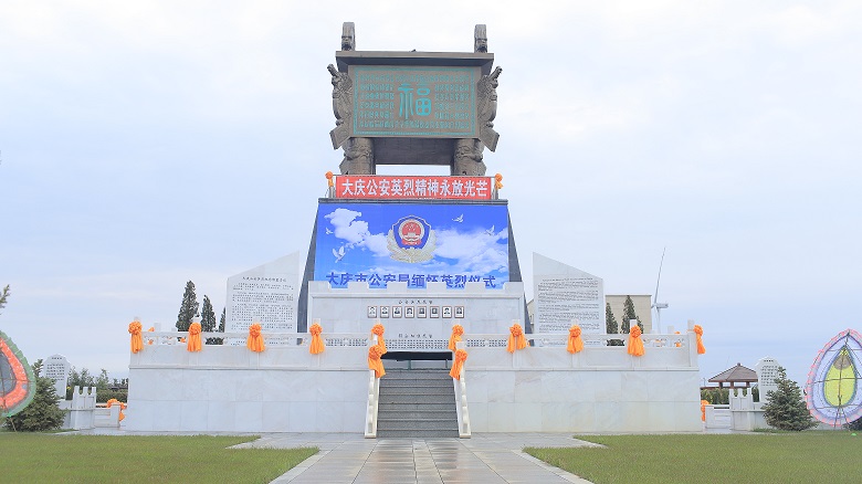 大慶公安英烈園座落于大慶市讓胡路區天堂墓園內,由天堂墓園有限公司獨資捐建,整體設計以“肅穆、莊重、簡(jiǎn)潔、大氣”為總基調,將大慶市公安局和公安英烈有關(guān)信息融入設計理念之中,體現公安特點(diǎn),突出紀念意義。英烈園位于整個(gè)墓園的中軸線(xiàn)上,整體呈南北向的長(cháng)方形形狀,由墓前廣場(chǎng)、主體形象墻和英烈墓地三部分組成,英烈墓地560平。四周環(huán)種柏樹(shù)70棵,代表建局以來(lái)因公犧牲的70位民警,寓意英烈精神松柏長(cháng)青。